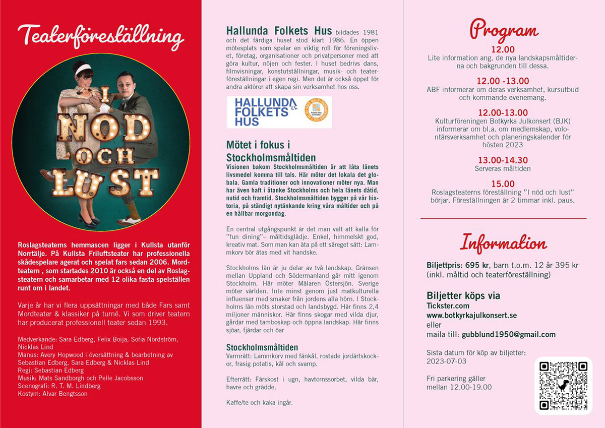 Välkommen 23 september till en unik kulturföreställning med både teater, kunskap och en kulinarisk måltid. KLICKA HÄR