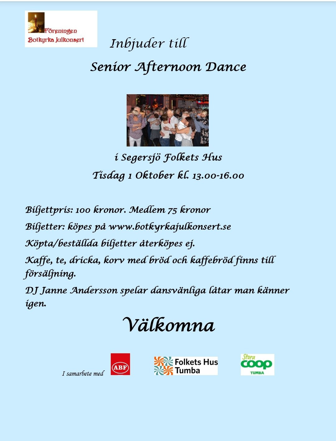 SENIOR AFTERNOON DANCE tisdag 1/10 Segersjö Folkets Hus