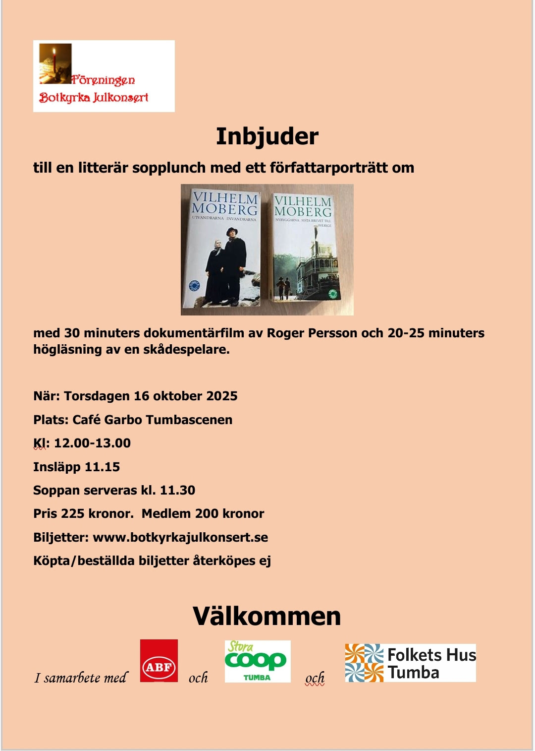 SOPPLUNCH 16/10 - med författarporträtt VILHELM MOBERG
