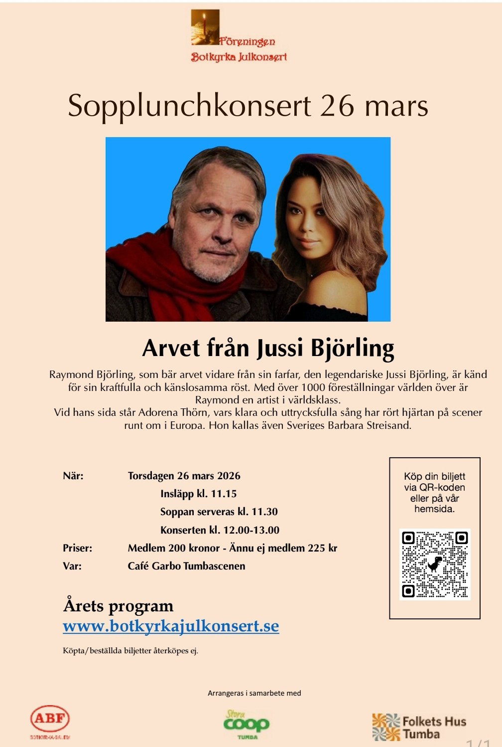 Sopplunch 26/3 med Raymond Björling och Adorena Thörn